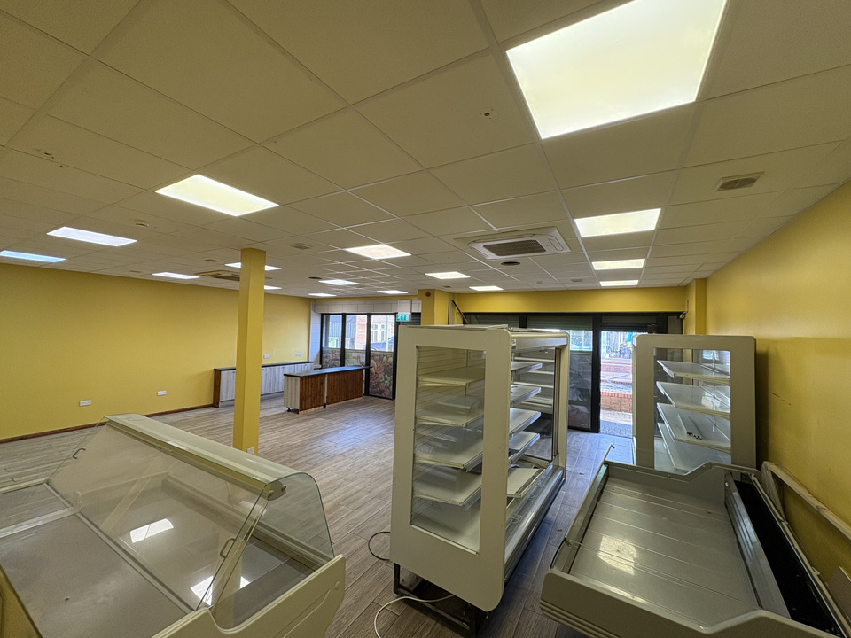 The space features a fully glazed shop front with roller shutters, three-phase power and air-conditioning to keep things comfortable year-round. A range of refrigeration equipment may be available upon request.